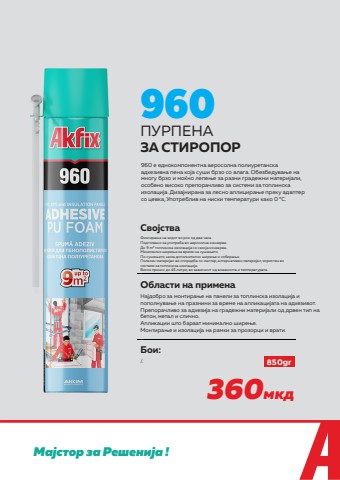 %u041c%u0430%u0458%u0441%u0442%u043e%u0440 %u0437%u0430 %u0420%u0435%u0448%u0435%u043d%u0438%u0458%u0430 !/.960%u041f%u0423%u0420%u041f%u0415%u041d%u0410960 %u0435 %u0435%u0434%u043d%u043e%u043a%u043e%u043c%u043f%u043e%u043d%u0435%u043d%u0442%u043d%u0430 %u0430%u0435%u0440%u043e%u0441%u043e%u043b%u043d%u0430 %u043f%u043e%u043b%u0438%u0443%u0440%u0435%u0442%u0430%u043d%u0441%u043a%u0430 %u0430%u0434%u0445%u0435%u0437%u0438%u0432%u043d%u0430 %u043f%u0435%u043d%u0430 %u043a%u043e%u0458%u0430 %u0441%u0443%u0448%u0438 %u0431%u0440%u0437%u043e %u0441%u043e %u0432%u043b%u0430%u0433%u0430. %u041e%u0431%u0435%u0437%u0431%u0435%u0434%u0443%u0432%u0430%u045a%u0435 %u043d%u0430 %u043c%u043d%u043e%u0433%u0443 %u0431%u0440%u0437%u043e %u0438 %u043c%u043e%u045c%u043d%u043e %u043b%u0435%u043f%u0435%u045a%u0435 %u0437%u0430 %u0440%u0430%u0437%u043d%u0438 %u0433%u0440%u0430%u0434%u0435%u0436%u043d%u0438 %u043c%u0430%u0442%u0435%u0440%u0438%u0458%u0430%u043b%u0438, %u043e%u0441%u043e%u0431%u0435%u043d%u043e %u0432%u0438%u0441%u043e%u043a%u043e %u043f%u0440%u0435%u043f%u043e%u0440%u0430%u0447%u043b%u0438%u0432%u043e %u0437%u0430 %u0441%u0438%u0441%u0442%u0435%u043c%u0438 %u0437%u0430 %u0442%u043e%u043f%u043b%u0438%u043d%u0441%u043a%u0430%u0438%u0437%u043e%u043b%u0430%u0446%u0438%u0458%u0430. %u0414%u0438%u0437%u0430%u0458%u043d%u0438%u0440%u0430%u043d%u0430 %u0437%u0430 %u043b%u0435%u0441%u043d%u043e %u0430%u043f%u043b%u0438%u0446%u0438%u0440%u0430%u045a%u0435 %u043f%u0440%u0435%u043a%u0443 %u0430%u0434%u0430%u043f%u0442%u0435%u0440 %u0441%u043e %u0446%u0435%u0432%u043a%u0430, %u0423%u043f%u043e%u0442%u0440%u0435%u0431%u043b%u0438%u0432 %u043d%u0430 %u043d%u0438%u0441%u043a%u0438 %u0442%u0435%u043c%u043f%u0435%u0440%u0430%u0442%u0443%u0440%u0438 %u043a%u0430%u043a%u043e 0 %u00b0C.%u0417%u0410 %u0421%u0422%u0418%u0420%u041e%u041f%u041e%u0420 %u0421%u0432%u043e%u0458%u0441%u0442%u0432%u0430%u041e%u0431%u043b%u0430%u0441%u0442%u0438 %u043d%u0430 %u043f%u0440%u0438%u043c%u0435%u043d%u0430%u0411o%u0438:%u0424%u0438%u043a%u0441%u0438%u0440%u0430%u045a%u0435 %u043d%u0430 %u0455%u0438%u0434%u043e%u0442 %u0432%u043e %u0440%u043e%u043a %u043e%u0434 %u0434%u0432%u0430 %u0447%u0430%u0441%u0430.%u041f%u043e%u0434%u0433%u043e%u0442%u0432%u0435%u043d%u043e %u0437%u0430 %u0443%u043f%u043e%u0442%u0440%u0435%u0431%u0430 %u0432%u043e %u0430%u0435%u0440%u043e%u0441%u043e%u043b%u043d%u0430 %u043a%u043e%u043d%u0437%u0435%u0440%u0432%u0430.%u0414%u043e 9 m%u00b2 %u0442%u043e%u043f%u043b%u0438%u043d%u0441%u043a%u0430 %u0438%u0437%u043e%u043b%u0430%u0446%u0438%u0458%u0430 %u0441%u043e %u0441%u0435%u043a%u043e%u0458%u0430 %u043a%u043e%u043d%u0437%u0435%u0440%u0432%u0430.%u041c%u0438%u043d%u0438%u043c%u0430%u043b%u043d%u043e %u0448%u0438%u0440%u0435%u045a%u0435 %u0437%u0430 %u0432%u0440%u0435%u043c%u0435 %u043d%u0430 %u0441%u0443%u0448%u0435%u045a%u0435%u0442%u043e.%u041f%u043e %u0441%u0443%u0448%u0435%u045a%u0435%u0442%u043e, %u043d%u0435%u043c%u0430 %u0434%u043e%u043f%u043e%u043b%u043d%u0438%u0442%u0435%u043b%u043d%u043e %u0448%u0438%u0440%u0435%u045a%u0435 %u0438 %u0441%u043e%u0431%u0438%u0440%u0430%u045a%u0435.%u041f%u043e%u043b%u0435%u0441%u0435%u043d %u043c%u0430%u0442%u0435%u0440%u0438%u0458%u0430%u043b %u0432%u043e %u0441%u043f%u043e%u0440%u0435%u0434%u0431%u0430 %u0441%u043e %u043c%u0430%u043b%u0442%u0435%u0440, %u0430%u043b%u0442%u0435%u0440%u043d%u0430%u0442%u0438%u0432%u0435%u043d %u043c%u0430%u0442%u0435%u0440%u0438%u0458%u0430%u043b, %u043a%u043e%u0440%u0438%u0441%u0442%u0435%u043d %u0432%u043e %u0441%u0438%u0441%u0442%u0435%u043c%u0438 %u0437%u0430 %u0442%u043e%u043f%u043b%u0438%u043d%u0441%u043a%u0430 %u0438%u0437%u043e%u043b%u0430%u0446%u0438%u0458%u0430.%u0412%u0438%u0441%u043e%u043a %u043f%u0440%u0438%u043d%u043e%u0441 %u0434%u043e 45 %u043b%u0438%u0442%u0440%u0438, %u0432%u043e %u0437%u0430%u0432%u0438%u0441%u043d%u043e%u0441%u0442 %u043e%u0434 %u0432%u043b%u0430%u0436%u043d%u043e%u0441%u0442%u0430 %u0438 %u0442%u0435%u043c%u043f%u0435%u0440%u0430%u0442%u0443%u0440%u0430%u0442%u0430.%u041d%u0430%u0458%u0434%u043e%u0431%u0440%u043e %u0437%u0430 %u043c%u043e%u043d%u0442%u0438%u0440%u0430%u045a%u0435 %u043d%u0430 %u043f%u0430%u043d%u0435%u043b%u0438 %u0437%u0430 %u0442%u043e%u043f%u043b%u0438%u043d%u0441%u043a%u0430 %u0438%u0437%u043e%u043b%u0430%u0446%u0438%u0458%u0430 %u0438 %u043f%u043e%u043f%u043e%u043b%u043d%u0443%u0432%u0430%u045a%u0435 %u043d%u0430 %u043f%u0440%u0430%u0437%u043d%u0438%u043d%u0438 %u0437%u0430 %u0432%u0440%u0435%u043c%u0435 %u043d%u0430 %u0430%u043f%u043b%u0438%u043a%u0430%u0446%u0438%u0458%u0430%u0442%u0430 %u043d%u0430 %u0430%u0434%u0445%u0435%u0437%u0438%u0432%u043e%u0442.%u041f%u0440%u0435%u043f%u043e%u0440%u0430%u0447%u043b%u0438%u0432%u043e %u0437%u0430 %u0430%u0434%u0445%u0435%u0437%u0438%u0458%u0430 %u043d%u0430 %u0433%u0440%u0430%u0434%u0435%u0436%u043d%u0438 %u043c%u0430%u0442%u0435%u0440%u0438%u0458%u0430%u043b%u0438 %u043e%u0434 %u0434%u0440%u0432%u0435%u043d %u0442%u0438%u043f %u043d%u0430 %u0431%u0435%u0442%u043e%u043d, %u043c%u0435%u0442%u0430%u043b %u0438 %u0441%u043b%u0438%u0447%u043d%u043e.%u0410%u043f%u043b%u0438%u043a%u0430%u0446%u0438%u0438 %u0448%u0442%u043e %u0431%u0430%u0440%u0430%u0430%u0442 %u043c%u0438%u043d%u0438%u043c%u0430%u043b%u043d%u043e %u0448%u0438%u0440%u0435%u045a%u0435.%u041c%u043e%u043d%u0442%u0438%u0440%u0430%u045a%u0435 %u0438 %u0438%u0437%u043e%u043b%u0430%u0446%u0438%u0458%u0430 %u043d%u0430 %u0440%u0430%u043c%u043a%u0438 %u0437%u0430 %u043f%u0440%u043e%u0437%u043e%u0440%u0446%u0438 %u0438 %u0432%u0440%u0430%u0442%u0438.360%u043c%u043a%u0434850gr