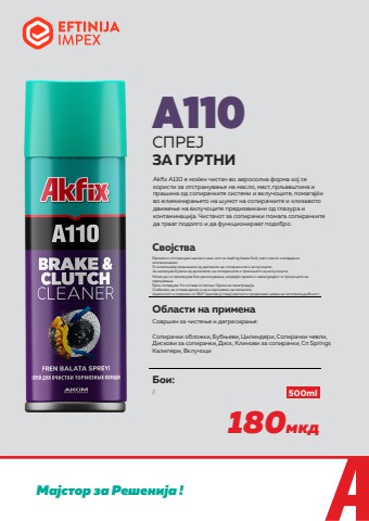%u041c%u0430%u0458%u0441%u0442%u043e%u0440 %u0437%u0430 %u0420%u0435%u0448%u0435%u043d%u0438%u0458%u0430 !/.A110%u0421%u041f%u0420%u0415%u0408Akfix A110 %u0435 %u043c%u043e%u045c%u0435%u043d %u0447%u0438%u0441%u0442%u0430%u0447 %u0432%u043e %u0430%u0435%u0440%u043e%u0441%u043e%u043b%u043d%u0430 %u0444%u043e%u0440%u043c%u0430 %u043a%u043e%u0458 %u0441%u0435 %u043a%u043e%u0440%u0438%u0441%u0442%u0438 %u0437%u0430 %u043e%u0442%u0441%u0442%u0440%u0430%u043d%u0443%u0432%u0430%u045a%u0435 %u043d%u0430 %u043c%u0430%u0441%u043b%u043e, %u043c%u0430%u0441%u0442, %u043f%u0440%u0459%u0430%u0432%u0448%u0442%u0438%u043d%u0430 %u0438 %u043f%u0440%u0430%u0448%u0438%u043d%u0430 %u043e%u0434 %u0441%u043e%u043f%u0438%u0440%u0430%u0447%u043a%u0438%u0442%u0435 %u0441%u0438%u0441%u0442%u0435%u043c%u0438 %u0438 %u0432%u043a%u043b%u0443%u0447%u043e%u0446%u0438%u0442%u0435, %u043f%u043e%u043c%u0430%u0433%u0430%u0458%u045c%u0438 %u0432%u043e %u0435%u043b%u0438%u043c%u0438%u043d%u0438%u0440%u0430%u045a%u0435%u0442%u043e %u043d%u0430 %u0448%u0443%u043c%u043e%u0442 %u043d%u0430 %u0441%u043e%u043f%u0438%u0440%u0430%u0447%u043a%u0438%u0442%u0435 %u0438 %u043a%u043b%u0438%u0437%u0430%u0432%u043e%u0442%u043e %u0434%u0432%u0438%u0436%u0435%u045a%u0435 %u043d%u0430 %u0432%u043a%u043b%u0443%u0447%u043e%u0446%u0438%u0442%u0435 %u043f%u0440%u0435%u0434%u0438%u0437%u0432%u0438%u043a%u0430%u043d%u0438 %u043e%u0434 %u0433%u043b%u0430%u0437%u0443%u0440%u0430 %u0438 %u043a%u043e%u043d%u0442%u0430%u043c%u0438%u043d%u0430%u0446%u0438%u0458%u0430. %u0427%u0438%u0441%u0442%u0430%u0447%u043e%u0442 %u0437%u0430 %u0441%u043e%u043f%u0438%u0440%u0430%u0447%u043a%u0438 %u043f%u043e%u043c%u0430%u0433%u0430 %u0441%u043e%u043f%u0438%u0440%u0430%u0447%u043a%u0438%u0442%u0435 %u0434%u0430 %u0442%u0440%u0430%u0430%u0442 %u043f%u043e%u0434%u043e%u043b%u0433%u043e %u0438 %u0434%u0430 %u0444%u0443%u043d%u043a%u0446%u0438%u043e%u043d%u0438%u0440%u0430%u0430%u0442 %u043f%u043e%u0434%u043e%u0431%u0440%u043e.%u0417%u0410 %u0413%u0423%u0420%u0422%u041d%u0418 %u0421%u0432%u043e%u0458%u0441%u0442%u0432%u0430%u041e%u0431%u043b%u0430%u0441%u0442%u0438 %u043d%u0430 %u043f%u0440%u0438%u043c%u0435%u043d%u0430%u0411o%u0438:%u0415%u0444%u0438%u043a%u0430%u0441%u043d%u043e %u043e%u0442%u0441%u0442%u0440%u0430%u043d%u0443%u0432%u0430 %u043d%u0430%u0441%u043b%u0430%u0433%u0438 %u043a%u0430%u043a%u043e %u0448%u0442%u043e %u0441%u0435 leaking brake fluid, %u043c%u0430%u0441%u0442, %u043c%u0430%u0441%u043b%u043e %u0438 %u0432%u0442%u0432%u0440%u0434%u0435%u043d%u0438 %u043a%u043e%u043d%u0442%u0430%u043c%u0438%u043d%u0430%u0446%u0438%u0438.%u0413%u0438 %u0435%u043b%u0438%u043c%u0438%u043d%u0438%u0440%u0430 %u043f%u0440%u0430%u0448%u0438%u043d%u0430%u0442%u0430 %u043e%u0434 %u0434%u0435%u043b%u043e%u0432%u0438%u0442%u0435 %u043d%u0430 %u0441%u043e%u043f%u0438%u0440%u0430%u0447%u043a%u0438%u0442%u0435 %u0438 %u0432%u043a%u043b%u0443%u0447%u043e%u0446%u0438%u0442%u0435.%u0408%u0430 %u043d%u0430%u043c%u0430%u043b%u0443%u0432%u0430 %u0431%u0443%u043a%u0430%u0442%u0430 %u043e%u0434 %u0434%u0438%u0441%u043a%u043e%u0432%u0438%u0442%u0435 %u043d%u0430 %u0441%u043e%u043f%u0438%u0440%u0430%u0447%u043a%u0438%u0442%u0435 %u0438 %u0442%u0440%u0435%u0441%u0435%u045a%u0435%u0442%u043e %u043d%u0430 %u0432%u043a%u043b%u0443%u0447%u043e%u0446%u0438%u0442%u0435.%u041c%u043e%u0436%u0435 %u0434%u0430 %u0441%u0435 %u043f%u0440%u0438%u043c%u0435%u043d%u0443%u0432%u0430 %u0431%u0435%u0437 %u0440%u0430%u0441%u043a%u0438%u043d%u0443%u0432%u0430%u045a%u0435, %u0448%u0442%u0435%u0434%u0435%u0458%u045c%u0438 %u0432%u0440%u0435%u043c%u0435 %u0438 %u043d%u0430%u043c%u0430%u043b%u0443%u0432%u0430%u0458%u045c%u0438 %u0433%u0438 %u0442%u0440%u043e%u0448%u043e%u0446%u0438%u0442%u0435 %u0437%u0430 %u043e%u0434%u0440%u0436%u0443%u0432%u0430%u045a%u0435.%u0411%u0440%u0437%u043e %u0438%u0441%u043f%u0430%u0440%u0443%u0432%u0430. %u041d%u0435 %u043e%u0441%u0442%u0430%u0432%u0430 %u043e%u0441%u0442%u0430%u0442%u043e%u0446%u0438. %u041e%u0434%u043b%u0438%u0447%u043d%u0430 %u043f%u0435%u043d%u0435%u0442%u0440%u0430%u0446%u0438%u0458%u0430.%u0421%u0442%u0430%u0431%u0438%u043b%u0435%u043d, %u043d%u0435 %u043e%u0441%u0442%u0430%u0432%u0430 %u0434%u0430%u043c%u043a%u0438 %u0438 %u043d%u0435 %u0435 %u043a%u043e%u0440%u043e%u0437%u0438%u0432%u0435%u043d %u0437%u0430 %u043c%u0435%u0442%u0430%u043b%u0438%u0442%u0435.%u0410%u0435%u0440%u043e%u0441%u043e%u043b%u043e%u0442 %u0435 %u043e%u043f%u0440%u0435%u043c%u0435%u043d %u0441%u043e 360%u00b0 (%u043d%u0430%u043e%u043f%u0430%u043a%u0443) %u0441%u043f%u0440%u0435%u0458 %u0432%u0435%u043d%u0442%u0438%u043b %u0438 %u043f%u0440%u043e%u0434%u043e%u043b%u0436%u0435%u043d %u0446%u0435%u0432%u043a%u0430 %u0437%u0430 %u043f%u043e%u0433%u043e%u043b%u0435%u043c%u0430 %u0443%u0434%u043e%u0431%u043d%u043e%u0441%u0442.%u0421%u043e%u0432%u0440%u0448%u0435%u043d %u0437%u0430 %u0447%u0438%u0441%u0442%u0435%u045a%u0435 %u0438 %u0434%u0435%u0433%u0440%u0435%u0441%u0438%u0440%u0430%u045a%u0435:%u0421%u043e%u043f%u0438%u0440%u0430%u0447%u043a%u0438 %u043e%u0431%u043b%u043e%u0436%u043a%u0438, %u0411%u0443%u0431%u045a%u0435%u0432%u0438, %u0426%u0438%u043b%u0438%u043d%u0434%u0435%u0440%u0438, %u0421%u043e%u043f%u0438%u0440%u0430%u0447%u043a%u0438 %u0447%u0435%u0432%u043b%u0438, %u0414%u0438%u0441%u043a%u043e%u0432%u0438 %u0437%u0430 %u0441%u043e%u043f%u0438%u0440%u0430%u0447%u043a%u0438, %u0414%u0438%u0441%u043a, %u041a%u043b%u0438%u043d%u043e%u0432%u0438 %u0437%u0430 %u0441%u043e%u043f%u0438%u0440%u0430%u0447%u043a%u0438, %u0421%u043f Springs%u041a%u0430%u043b%u0438%u043f%u0435%u0440%u0438, %u0412%u043a%u043b%u0443%u0447%u043e%u0446%u0438180%u043c%u043a%u0434500ml