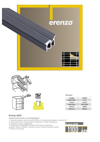 1. %u0423%u043d%u0438%u043a%u0430%u0442%u0435%u043d %u0434%u0438%u0437%u0430%u0458%u043d, %u043f%u043e%u0434 %u0430%u0433%u043e%u043b %u043e%u0434 60 %u0441%u0442%u0435%u043f%u0435%u043d%u0438. %u0421%u043e %u0441%u0438%u043b%u0438%u043a%u043e%u043d%u0441%u043a%u0438 %u043f%u0440%u043e%u0444%u0438%u043b, %u043d%u0435 %u043e%u0431%u0438%u0447%u0435%u043d %u0420%u0421.2. %u0412%u0438%u0441%u043e%u043a%u043e%u043a%u0432%u0430%u043b%u0438%u0442%u0435%u0442%u0435%u043d %u0430%u043b%u0443%u043c%u0438%u043d%u0438%u0443%u043c%u0441%u043a%u0438 %u043c%u0430%u0442%u0435%u0440%u0438%u0458%u0430%u043b %u0441%u043e %u0443%u0431%u0430%u0432%u0430 %u0437%u0430%u0432%u0440%u0448%u043d%u0438%u0446%u0430.3. %u0421%u0432%u0435%u0442%u043b%u043e%u0442%u043e %u0435 %u043c%u0435%u043a%u043e %u0438 %u0443%u043d%u0438%u0444%u043e%u0440%u043c%u043d%u043e.4. %u041e%u043f%u0446%u0438%u043e%u043d%u0430%u043b%u043d%u0438 %u043d%u0430%u0434%u0432%u043e%u0440%u0435%u0448%u043d%u0438 %u0441%u0435%u043d%u0437%u043e%u0440%u0438: PIR %u0441%u0435%u043d%u0437%u043e%u0440 %u0437%u0430 %u0434%u0432%u0438%u0436%u0435%u045a%u0435, %u0434%u043e%u043f%u0438%u0440%u0435%u043d %u043f%u0440%u0435%u043a%u0438%u043d, %u0434%u043e%u043f%u0438%u0440%u0435%u043d %u0441%u0435%u043d%u0437%u043e%u0440 %u043d%u0430 %u0440%u0430%u0447%u043a%u0430, %u0441%u0435%u043d%u0437%u043e%u0440 %u043d%u0430 %u0434%u043e%u043f%u0438%u0440 %u0437%u0430 %u0432%u0440%u0430%u0442%u0430.5. %u041b%u0435%u0441%u043d%u0430 %u0438%u043d%u0441%u0442%u0430%u043b%u0430%u0446%u0438%u0458%u0430.%u041a%u0410%u0420%u0410%u041a%u0422%u0415%u0420%u0418%u0421%u0422%u0418%u041a%u0418 %u041d%u0410 %u041f%u0420%u041e%u0418%u0417%u0412%u041e%u0414%u041e%u0422Erenzo 60251100 %u0434%u0435%u043dErenzo 6025%u041c%u0430%u0442 %u0446%u0440%u043d%u0430%u0428%u0438%u0444%u0440%u0430 233661%u0414%u0438%u043c%u0435%u043d%u0437%u0438%u0458%u0430 3 mt%u041d%u0430%u043f%u043e%u043d DC12V%u041f%u0440%u0438%u043a%u043b%u0443%u0447%u043e%u043a SMD 2835%u0421%u0432%u0435%u0442%u043b%u043e 4000K%u041c%u043e%u045c%u043d%u043e%u0441%u0442 8W/M