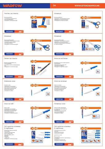 24%u0413%u043e%u043b%u0435%u043c%u0438%u043d%u0430:102mm 1+3 %u041f%u0430%u0440%u0447%u0438%u045a%u0430 %u0413%u043e%u043b%u0435%u043c%u0438%u043d%u0430 %u043d%u0430 %u0441%u0435%u0447%u0438%u043b%u043e%u0442%u043e:18*100mm %u0421%u043f%u0430%u043a%u0443%u0432%u0430%u043d%u043e %u0441%u043e %u0431%u043b%u0438%u0441%u0442%u0435%u0440 %u043a%u0430%u0440%u0434WGS1618 60MKD%u0427%u0438%u0441%u0442%u0430%u0447 %u0437%u0430 %u0441%u0442%u0430%u043a%u043b%u043e%u0413%u043e%u043b%u0435%u043c%u0438%u043d%u0430:160mm %u041c%u0430%u0442%u0435%u0440%u0438%u0458%u0430%u043b: %u041d%u0435%u2019%u0440%u0453%u043e%u0441%u0443%u0432%u0430%u0447%u043a%u0438 %u0447%u0435%u043b%u0438%u043a %u0414%u0435%u0431%u0435%u043b%u0438%u043d%u0430 %u043d%u0430 %u0441%u0435%u0447%u0438%u043b%u043e%u0442%u043e:2.0mm %u0421%u043f%u0430%u043a%u0443%u0432%u0430%u043d%u043e %u0441%u043e %u043b%u0438%u0437%u0433%u0430%u0447%u043a%u0430 %u043a%u0430%u0440%u0442%u0430WSX2607 60MKD%u041d%u043e%u0436%u0438%u0446%u0438%u0413%u043e%u043b%u0435%u043c%u0438%u043d%u0430:215%u043c%u043c(8,5%u201d) %u041c%u0430%u0442%u0435%u0440%u0438%u0458%u0430%u043b: %u041d%u0435%u2019%u0440%u0453%u043e%u0441%u0443%u0432%u0430%u0447%u043a%u0438 %u0447%u0435%u043b%u0438%u043a %u0423%u043d%u0438%u043a%u0430%u0442%u0435%u043d %u0434%u0438%u0437%u0430%u0458%u043d handle Sand Blast surface %u0421%u043f%u0430%u043a%u0443%u0432%u0430%u043d%u043e %u0441%u043e %u043b%u0438%u0437%u0433%u0430%u0447%u043a%u0430 %u043a%u0430%u0440%u0442%u0430WSX1601 90MKD%u041d%u043e%u0436%u0438%u0446%u0438%u0413%u043e%u043b%u0435%u043c%u0438%u043d%u0430:210mm(8%u201d) %u041c%u0430%u0442%u0435%u0440%u0438%u0458%u0430%u043b: %u043d%u0435%u0440%u0453%u043e%u0441%u0443%u0432%u0430%u0447%u043a%u0438 %u0447%u0435%u043b%u0438%u043a %u0414%u0435%u0431%u0435%u043b%u0438%u043d%u0430 %u043d%u0430 %u0441%u0435%u0447%u0438%u043b%u043e%u0442%u043e:1.8mm %u0423%u043d%u0438%u043a%u0430%u0442%u0435%u043d %u0434%u0438%u0437%u0430%u0458%u043d %u0440%u0430%u0447%u043a%u0430 %u0421%u043f%u0430%u043a%u0443%u0432%u0430%u043d%u043e %u0441%u043e %u043b%u0438%u0437%u0433%u0430%u0447%u043a%u0430 %u043a%u0430%u0440%u0442%u0430WSX1602 80MKD%u041d%u043e%u0436%u0438%u0446%u0438%u0416%u0435%u043b%u0435%u0437%u043e %u0442%u0435%u043b%u043e %u0414%u043e%u043b%u0436%u0438%u043d%u0430 %u043d%u0430 %u0441%u0435%u0447%u0435%u045a%u0435:10000m %u0421%u043e 1 %u043f%u0430%u0440%u0447%u0435 %u043c%u0430%u0441%u043b%u043e %u0437%u0430 %u0432%u0448%u043c%u0443%u043a%u0443%u0432%u0430%u045a%u0435 pipe %u0421%u043f%u0430%u043a%u0443%u0432%u0430%u043d%u043e %u0441%u043e %u043b%u0438%u0437%u0433%u0430%u0447%u043a%u0438 %u043a%u0430%u0440%u0434WGR2601 140MKD%u0421%u0435%u043a%u0430%u0447 %u0437%u0430 %u0441%u0442%u0430%u043a%u043b%u043e%u041c%u0430%u0442%u0435%u0440%u0438%u0458%u0430%u043b %u0437%u0430 %u043d%u043e%u0436: %u043d%u0435%u0440%u0453%u043e%u0441%u0443%u0432%u0430%u0447%u043a%u0438 %u0447%u0435%u043b%u0438%u043a (3Cr14) %u041c%u0430%u0442%u0435%u0440%u0438%u0458%u0430%u043b %u043d%u0430 %u0440%u0430%u0447%u043a%u0430%u0442%u0430: PP %u0414%u043e%u043b%u0436%u0438%u043d%u0430: 3,5%u2019%u2019(86%u043c%u043c) %u0421%u043f%u0430%u043a%u0443%u0432%u0430%u043d %u0441%u043e %u0445%u0430%u0440%u0442%u0438%u0435%u043d%u0430 %u043a%u0430%u0440%u0442%u0430WKK1135 50MKD%u041d%u043e%u0436 %u0437%u0430 %u0447%u0438%u0441%u0442%u0435%u045a%u0435%u0423%u0441%u043b%u0443%u0436%u0435%u043d %u043d%u043e%u0436 %u041c%u0430%u0442%u0435%u0440%u0438%u0458%u0430%u043b %u043d%u0430 %u0441%u0435%u0447%u0438%u043b%u043e%u0442%u043e: %u043d%u0435%u0440%u0453%u043e%u0441%u0443%u0432%u0430%u0447%u043a%u0438 %u0447%u0435%u043b%u0438%u043a(3Cr14) %u041c%u0430%u0442%u0435%u0440%u0438%u0458%u0430%u043b %u043d%u0430 %u0440%u0430%u0447%u043a%u0430%u0442%u0430:PP %u0414%u043e%u043b%u0436%u0438%u043d%u0430:5%u2019%u2019(123mm) %u0421%u043f%u0430%u043a%u0443%u0432%u0430%u043d %u0441%u043e %u043a%u0430%u0440%u0442%u0430WKK1154 50MKD%u041a%u043e%u0440%u0438%u0441%u0435%u043d %u043d%u043e%u0436%u041d%u043e%u0436 %u0437%u0430 %u0441%u0435%u0447%u0435%u045a%u0435 %u041c%u0430%u0442%u0435%u0440%u0438%u0458%u0430%u043b %u043d%u0430 %u0441%u0435%u0447%u0438%u043b%u043e%u0442%u043e: %u043d%u0435%u0440%u0453%u043e%u0441%u0443%u0432%u0430%u0447%u043a%u0438 %u0447%u0435%u043b%u0438%u043a(3Cr14) %u041c%u0430%u0442%u0435%u0440%u0438%u0458%u0430%u043b %u043d%u0430 %u0440%u0430%u0447%u043a%u0430%u0442%u0430:PP %u0414%u043e%u043b%u0436%u0438%u043d%u0430:8%u2019%u2019(196mm) %u0421%u043f%u0430%u043a%u0443%u0432%u0430%u043d %u0441%u043e %u043a%u0430%u0440%u0442%u0430WKK1182 70MKD%u041d%u043e%u0436 %u0437%u0430 %u0441%u0435%u0447%u0435%u045a%u0435%u041d%u043e%u0436 %u0437%u0430 %u043b%u0435%u0431 %u041c%u0430%u0442%u0435%u0440%u0438%u0458%u0430%u043b %u043d%u0430 %u0441%u0435%u0447%u0438%u043b%u043e%u0442%u043e: %u043d%u0435%u2019%u0440%u0453%u043e%u0441%u0443%u0432%u0430%u0447%u043a%u0438 %u0447%u0435%u043b%u0438%u043a(3Cr14) %u041c%u0430%u0442%u0435%u0440%u0438%u0458%u0430%u043b %u043d%u0430 %u0440%u0430%u0447%u043a%u0430%u0442%u0430:PP %u0414%u043e%u043b%u0436%u0438%u043d%u0430:8%u2019%u2019(196mm) %u0421%u043f%u0430%u043a%u0443%u0432%u0430%u043d %u0441%u043e %u0445%u0430%u0440%u0442%u0438%u0435%u043d%u0430 %u043a%u0430%u0440%u0442%u0430WKK1183 80MKD%u041d%u043e%u0436 %u0437%u0430 %u043b%u0435%u0431%u041d%u043e%u0436 %u0437%u0430 %u0433%u043e%u0442%u0432%u0430%u0447 %u041c%u0430%u0442%u0435%u0440%u0438%u0458%u0430%u043b %u043d%u0430 %u0441%u0435%u0447%u0438%u043b%u043e%u0442%u043e: %u043d%u0435%u0440%u0453%u043e%u0441%u0443%u0432%u0430%u0447%u043a%u0438 %u0447%u0435%u043b%u0438%u043a(3Cr14) %u041c%u0430%u0442%u0435%u0440%u0438%u0458%u0430%u043b %u043d%u0430 %u0440%u0430%u0447%u043a%u0430%u0442%u0430:PP %u0414%u043e%u043b%u0436%u0438%u043d%u0430:8%u2019%u2019(196mm) %u0421%u043f%u0430%u043a%u0443%u0432%u0430%u043d %u0441%u043e %u043a%u0430%u0440%u0442%u0430WKK1181 80MKD%u0413%u043e%u0442%u0432%u0430%u0447%u043a%u0438 %u043d%u043e%u04363 %u041f%u0430%u0440%u0447%u0438