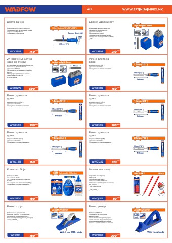 40%u0413%u043e%u043b%u0435%u043c%u0438%u043d%u0430:4mm*16mm*250mm %u041c%u0430%u0442%u0435%u0440%u0438%u0458%u0430%u043b:45# %u0458%u0430%u0433%u043b%u0435%u0440%u043e%u0434%u0435%u043d %u0447%u0435%u043b%u0438%u043a %u0422%u0435%u0440%u043c%u0438%u0447%u043a%u0430 %u043e%u0431%u0440%u0430%u0431%u043e%u0442%u043a%u0430 %u0421%u043f%u0430%u043a%u0443%u0432%u0430%u043d%u043e %u043f%u043e %u0435%u0442%u0438%u043a%u0435%u0442%u0430WCC1303 140MKD%u0414%u043b%u0435%u0442%u043e %u0440%u0430%u0447%u043d%u043e9 %u043f%u0430%u0440%u0447%u0438%u045a%u0430 %u0446%u0438%u0444%u0440%u0435%u043d %u0443%u0434%u0430%u0440 set %u0412%u0438%u0441%u0438%u043d%u0430 %u043d%u0430 %u0446%u0438%u0444%u0440%u0430:6 mm %u0414%u043e%u043b%u0436%u0438%u043d%u0430:60 mm %u0412%u043a%u043b%u0443%u0447%u0443%u0432%u0430:0-9 punch %u041c%u0430%u0442%u0435%u0440%u0438%u0458%u0430%u043b:%u0458%u0430%u0433%u043b%u0435%u0440%u043e%u0434%u0435%u043d %u0447%u0435%u043b%u0438%u043a %u0421%u0442%u0432%u0440%u0434%u043d%u0430%u0442%u0430 %u0433%u043b%u0430%u0432%u0430 %u0434%u043e HRC48-52%u00b0D _x00WCC9596 210MKD%u0411%u0440%u043e%u0458%u043a%u0438 %u0443%u0434%u0430%u0440%u043d%u0438 %u0441%u0435%u044227 %u041f%u0430%u0440%u0447%u0438%u045a%u0430 %u0434%u0443%u043f%u0447%u0430%u043b%u043a%u0430 %u0437%u0430 %u0431%u0443%u043a%u0432%u0438 set %u0412%u0438%u0441%u0438%u043d%u0430 %u043d%u0430 %u0431%u0443%u043a%u0432%u0430%u0442%u0430: 6mm %u0414%u043e%u043b%u0436%u0438%u043d%u0430: 60mm %u0412%u043a%u043b%u0443%u0447%u0443%u0432%u0430: A~Z %u0431%u0443%u043a%u0432%u0430 %u0438 &-%u0441%u0438%u043c%u0431%u043e%u043b punch %u041c%u0430%u0442%u0435%u0440%u0438%u0458%u0430%u043b: %u0458%u0430%u0433%u043b%u0435%u0440%u043e%u0434%u0435%u043d %u0447%u0435%u043b%u0438%u043a %u0426%u0432%u0440%u0441%u0442%u0438%u043d%u0430: HRC48_x0D %u043e%u0434 %u043a%u0443%u0442%u0438%u0458%u0430%u0442%u0430WCC9276 590MKD27 %u041f%u0430%u0440%u0447%u0438%u045a%u0430 %u0421%u0435%u0442 %u0437%u0430 %u0443%u0434%u0430%u0440 %u0441%u043e %u0431%u0443%u043a%u0432%u0438%u0428%u0438%u0440%u0438%u043d%u0430: 12mm (1/2%u2019%u2019) %u0414%u043e%u043b%u0436%u0438%u043d%u0430: 140mm %u0421%u043f%u0430%u043a%u0443%u0432%u0430%u043d%u043e %u0441%u043e %u043b%u0438%u0437%u0433%u0430%u0447%u043a%u0430 %u043a%u0430%u0440%u0442%u0430WWC1212 160MKD%u0420%u0430%u0447%u043d%u043e %u0434%u043b%u0435%u0442%u043e %u0437%u0430 %u0434%u0440%u0432%u043e%u0428%u0438%u0440%u0438%u043d%u0430: 14mm (9/16%u2019%u2019) %u0414%u043e%u043b%u0436%u0438%u043d%u0430: 140mm %u0421%u043f%u0430%u043a%u0443%u0432%u0430%u043d%u043e %u0441%u043e %u043b%u0438%u0437%u0433%u0430%u0447%u043a%u0430 %u043a%u0430%u0440%u0442%u0430WWC1214 150MKD%u0420%u0430%u0447%u043d%u043e %u0434%u043b%u0435%u0442%u043e %u0437%u0430 %u0434%u0440%u0432%u043e%u0428%u0438%u0440%u0438%u043d%u0430: 16mm (5/8%u2019%u2019) %u0414%u043e%u043b%u0436%u0438%u043d%u0430: 140mm %u0421%u043f%u0430%u043a%u0443%u0432%u0430%u043d%u043e %u0441%u043e %u043b%u0438%u0437%u0433%u0430%u0447%u043a%u0430 %u043a%u0430%u0440%u0442%u0430WWC1216 160MKD%u0420%u0430%u0447%u043d%u043e %u0434%u043b%u0435%u0442%u043e %u0437%u0430 %u0434%u0440%u0432%u043e%u0428%u0438%u0440%u0438%u043d%u0430: 19mm (3/4%u2019%u2019) %u0414%u043e%u043b%u0436%u0438%u043d%u0430: 140mm %u0421%u043f%u0430%u043a%u0443%u0432%u0430%u043d%u043e %u0441%u043e %u043b%u0438%u0437%u0433%u0430%u0447%u043a%u0430 %u043a%u0430%u0440%u0442%u0430WWC1219 160MKD%u0420%u0430%u0447%u043d%u043e %u0434%u043b%u0435%u0442%u043e %u0437%u0430 %u0434%u0440%u0432%u043e%u0428%u0438%u0440%u0438%u043d%u0430: 22mm (7/8%u2019%u2019) %u0414%u043e%u043b%u0436%u0438%u043d%u0430: 140mm %u0421%u043f%u0430%u043a%u0443%u0432%u0430%u043d%u043e %u0441%u043e %u043b%u0438%u0437%u0433%u0430%u0447%u043a%u0430 %u043a%u0430%u0440%u0442%u0430WWC1222 170MKD%u0420%u0430%u0447%u043d%u043e %u0434%u043b%u0435%u0442%u043e %u0437%u0430 %u0434%u0440%u0432%u043e%u0414%u043e%u043b%u0436%u0438%u043d%u0430: 30m %u0421%u043e 1 %u0448%u0438%u0448%u0435 chalk %u0421%u043e 1 %u043f%u0430%u0440%u0447%u0435 %u0430%u043b%u043a%u043e%u0445%u043e%u043b%u0435%u043d %u043f%u0438%u0458%u0430%u043b%u043e%u043a bubble %u0421%u043e 1 %u043f%u0430%u0440%u0447%u0435 %u0441%u0438%u043d %u043f%u0440%u0430%u0448%u043e%u043a: 4oz/113g %u0421%u043f%u0430%u043a%u0443%u0432%u0430%u043d%u043e %u0441%u043e %u043b%u0438%u0437%u0433%u0430%u0447%u043a%u0430 %u043a%u0430%u0440%u0442%u0430WHX1630 180MKD%u041a%u043e%u043d%u043e%u043f %u0441%u043e %u0431%u043e%u0458%u0430 Carpenter pencil(oval) 12Pcs/set %u0411%u043e%u0458%u0430 %u0437%u0430 %u043c%u043e%u043b%u0438%u0432: black %u0413%u043e%u043b%u0435%u043c%u0438%u043d%u0430: 12*7.4*176mm %u0413%u043e%u043b%u0435%u043c%u0438%u043d%u0430 %u043d%u0430 %u043e%u0433%u0440%u0430%u0434%u0430%u0442%u0430 %u0437%u0430 %u043c%u043e%u043b%u0438%u0432: 5.0*2.0mm_x00_cked by ca_x00_x00D_1WMQ1512 80MKD%u041c%u043e%u043b%u0438%u0432 %u0437%u0430 %u0441%u0442%u043e%u043b%u0430%u0440%u0414%u043e%u043b%u0436%u0438%u043d%u0430 %u043d%u0430 %u0434%u043e%u043b%u0436%u0438%u043d%u0430%u0442%u0430: 163MME_X000D_ %u041f%u041b%u0410%u041d%u0415%u0420%u0421%u041a%u0418 %u041c%u0410%u0422%u0415%u0420%u0418%u0408%u0410 %u0417%u0410 %u0411%u0415%u0417%u0411%u0415%u0414%u041d%u041e%u0421%u0422: %u041f%u043b%u043e%u0447%u0430 %u0437%u0430 %u043f%u0440%u0438%u043b%u0430%u0433%u043e%u0434%u0443%u0432%u0430%u045a%u0435 %u0458%u0430%u0433%u043b%u0435%u0440%u043e%u0434 %u0447%u0435%u043b%u0438%u043a_X000D_WTB1101 180MKD%u0420%u0430%u0447%u043d%u043e %u0441%u0442%u0440%u0443%u0433%u0414%u043e%u043b%u0436%u0438%u043d%u0430:250mm %u041c%u0430%u0442%u0435%u0440%u0438%u0458%u0430%u043b %u043d%u0430 %u0442%u0435%u043b%u043e%u0442%u043e %u043d%u0430 %u0430%u0432%u0438%u043e%u043d%u043e%u0442:ABS %u0417%u0430%u043c%u0435%u043d%u043b%u0438%u0432 %u0432%u0438%u0441%u043e%u043a%u043e%u0458%u0430%u0433%u043b%u0435%u0440%u043e%u0434%u0435%u043d %u0447%u0435%u043b%u0438%u043a %u0441%u0435%u0447%u0438%u043b%u043e %u0417%u0430%u0434%u043d%u0430%u0442%u0430 %u