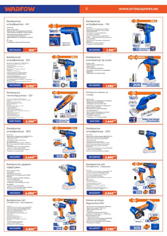 5%u041d%u0430%u043f%u043e%u043d:4V %u0428%u0435%u0441%u0442%u043e%u043a%u0430%u0442%u0447%u0435:1/4%u201d %u0411%u0440%u0437%u0438%u043d%u0430 %u0431%u0435%u0437 %u043e%u043f%u0442%u043e%u0432%u0430%u0440%u0443%u0432%u0430%u045a%u0435:240rpm %u041c%u0430%u043a%u0441%u0438%u043c%u0430%u043b%u0435%u043d %u0432%u0440%u0442%u0435%u0436%u0435%u043d %u043c%u043e%u043c%u0435%u043d%u0442:4Nm %u0418%u043d%u0442%u0435%u0433%u0440%u0438%u0440%u0430%u043d%u0430 %u0440%u0430%u0431%u043e%u0442%u043d%u0430 %u0441%u0432%u0435%u0442%u043b%u0438%u043d%u0430 %u041f%u043e%u043b%u043d%u0435%u045a%u0435 %u043f%u0440%u0435%u043a%u0443 USB %u0442%u0438%u043f-C %u043a%u0430%u0431%u0435%u043b(%u043a%u0430%u0431%u0435%u043b%u043e%u0442 %u0441%u0435 %u043f%u0440%u043e%u0434%u0430%u0432%u0430 %u043f%u043e%u0441%u0435%u0431%u043d%u043e)_0D. V bits %u0421%u043f%u0430%u043a%u0443%u0432%u0430%u043d%u043e %u043e%u0434 Double %u0431%u043b%u0438%u0441%u0442%u0435%u0440%u0438WCV4404 610MKD%u0411%u0430%u0442%u0435%u0440%u0438%u0441%u043a%u0438 %u0448%u0442%u0440%u0430%u0444%u0446%u0438%u0433%u0435%u0440 - 4V%u041d%u0430%u043f%u043e%u043d:12V %u0411%u0440%u0437%u0438%u043d%u0430 %u0431%u0435%u0437 %u043e%u043f%u0442%u043e%u0432%u0430%u0440%u0443%u0432%u0430%u045a%u0435:0-750rpm %u041c%u0430%u043a%u0441%u0438%u043c%u0430%u043b%u0435%u043d %u0432%u0440%u0442%u0435%u0436%u0435%u043d %u043c%u043e%u043c%u0435%u043d%u0442:20Nm %u041f%u043b%u0430%u0441%u0442%u0438%u0447%u043d%u0430 chuck %u041a%u0430%u043f%u0430%u0446%u0438%u0442%u0435%u0442 %u043d%u0430 %u0447%u0430%u0448%u043a%u0430%u0442%u0430:0,8-10mm %u041f%u043e%u0441%u0442%u0430%u0432%u043a%u0438 %u0437%u0430 %u0432%u0440%u0442%u0435%u0436%u0435%u043d %u043c%u043e%u043c%u0435%u043d%u0442:15+0%u0441%u0432%u0435%u0442%u043b%u0438%u043d%u0430_xD %u0440%u0430%u0431%u043e%u0442%u0430:15+1_x00D_ _ 1 %u041f%u0430%u0440%u0447%u0438%u045a%u0430 %u041f%u0430%u043a%u0435%u0442 %u0431%u0430%u0442%u0435%u0440%u0438%u0438 %u043e%u0434 1,5 Ah (WLBS5150) %u041f%u0440%u0438%u043a%u043b%u0443%u0447%u043e%u043a %u0437%u0430 %u043f%u043e%u043b%u043d%u0435%u045a%u0435 %u043d%u0430 %u0431%u0430%u0442%u0435%u0440%u0438%u0458%u0430%u0442%u0430: USB %u0442%u0438%u043f-C %u041f%u043e%u043b%u043d%u0430%u0447 %u0441%u0435 %u043f%u0440%u043e%u0434%u0430%u0432%u0430 %u043e%u0434%u0434%u0435%u043b%u043d%u043e %u0421%u043f%u0430%u043a%u0443%u0432%u0430%u043d %u043f%u043e %u043a%u0443%u0442%u0438%u0458%u0430 %u0432%u043e %u0431%u043e%u0458%u0430WCDS510 1.310MKD%u0411%u0430%u0442%u0435%u0440%u0438%u0441%u043a%u0430%u0448%u0442%u0440%u0430%u0444%u0438%u043b%u0438%u0446%u0430 - 12V%u0411%u0440%u0437%u0438%u043d%u0430 %u0431%u0435%u0437 %u043e%u043f%u0442%u043e%u0432%u0430%u0440%u0443%u0432%u0430%u045a%u0435: 0-400/0-1500rpm %u041c%u0430%u043a%u0441%u0438%u043c%u0430%u043b%u0435%u043d %u0432%u0440%u0442%u0435%u0436%u0435%u043d %u043c%u043e%u043c%u0435%u043d%u0442: 20Nm %u041f%u043b%u0430%u0441%u0442%u0438%u0447%u043d%u0430 chuck %u041a%u0430%u043f%u0430%u0446%u0438%u0442%u0435%u0442 %u043d%u0430 %u0447%u0430%u0448%u043a%u0430%u0442%u0430: 0.8-10mm_x0_peaked0 r %u0418%u043d%u0442%u0435%u0433%u0440%u0438%u0440%u0430%u043d%u0430 LED %u0440%u0430%u0431%u043e%u0442%u043d%u0430 %u0441%u0432%u0435%u0442%u043b%u0438%u043d%u0430 %u0412%u043a%u043b%u0443%u0447%u0443%u0432%u0430: 1 %u043f%u0430%u0440%u0447%u0438%u045a%u0430 Cr-V 65mm bits 3 %u043f%u0430%u0440%u0447%u0438%u045a%u0430 %u0434%u0443%u043f%u0447%u0430%u043b%u043a%u0438 %u0437%u0430 %u0432%u0440%u0442%u0435%u045a%u0435 4,5,6mm 3 %u041f%u0430%u0440%u0447%u0438%u045a%u0430 %u0434%u0443%u043f%u0447%u0430%u043b%u043a%u0438 %u0437%u0430 %u0434%u0440%u0432%u043e 4,5,6mm 7 %u041f%u0430%u0440%u0447%u0438%u045a%u0430 %u0425%u0435%u043a%u0441 %u043a%u043b%u0443%u0447:1,5,2,2,5,3,4,5,6mm %u041f%u0430%u0440%u0447%u0438%u045a%u0430 %u0437%u0430 %u0448%u0440%u0430%u0444%u0446%u0438%u0433%u0435%u0440%u0438: SL4,SL5,SL6,PH1,PH2,PH3,T10,T15,T20,T30 10 %u043f%u0430%u0440%u0447%u0438%u045a%u0430 2%u201d %u0431%u0438%u0442%u043e%u0432%u0438 %u043e%u0434 %u0448%u0440%u0430%u0444%u0446%u0438%u0433%u0435%u0440: SL4,SL5,SL6,PH1,PH2,PH2,PH3,000D .5 %u0410%u0445 %u0431%u0430%u0442%u0435%u0440%u0438%u0441%u043a%u0438 %u043f%u0430%u043a%u0435%u0442 (WLBS5150) %u041f%u0440%u0438%u043a%u043b%u0443%u0447%u043e%u043a %u0437%u0430 %u043f%u043e%u043b%u043d%u0435%u045a%u0435 %u043d%u0430 %u0431%u0430%u0442%u0435%u0440%u0438%u0458%u0430%u0442%u0430: USB %u0442%u0438%u043f-C %u0421%u043f%u0430%u043a%u0443%u0432%u0430%u043d %u0432%u043e %u043a%u0443%u0444%u0435%u0440.WCDS525 2.750MKD%u0411%u0430%u0442%u0435%u0440%u0438%u0441%u043a%u0430%u0448%u0442%u0440%u0430%u0444%u0438%u043b%u0438%u0446%u0430 - 12V%u041d%u0430%u043f%u043e%u043d: 20V %u041c%u0430%u043a%u0441%u0438%u043c%u0430%u043b%u0435%u043d %u043f%u0440%u0438%u0442%u0438%u0441%u043e%u043a: 150PSI/11Bar %u0421%u043e 3 %u043f%u0430%u0440%u0447%u0438%u045a%u0430 adaptors %u0411%u0430%u0442%u0435%u0440%u0438%u0458%u0430 %u0438 %u043f%u043e%u043b%u043d%u0430%u0447 %u0441%u0435 %u043f%u0440%u043e%u0434%u0430%u0432%u0430%u0430%u0442 %u043e%u0434%u0434%u0435%u043b%u043d%u043e %u0421%u043f%u0430%u043a%u0443%u0432%u0430%u043d%u043e %u043f%u043e %u0431%u043e%u0458%u0430 %u043a%u0443%u0442%u0438%u0458%u0430WLN2520 1.390MKD%u0411%u0430%u0442%u0435%u0440%u0438%u0441%u043a%u0438 %u043a%u043e%u043c%u043f%u0440%u0435%u0441%u043e%u0440 %u0437%u0430 %u0433%u0443%u043c%u0438 %u0411%u0440%u0437%u0438%u043d%u0430 %u0431%u0435%u0437 %u043e%u043f%u0442%u043e%u0432%u0430%u0440%u0443%u0432%u0430%u045a%u0435: 8000-32000rpm %u041f%u043e%u043b%u043d%u0435%u045a%u0435 %u043f%u0440%u0435%u043a%u0443 USB %u0442%u0438%u043f-C %u043a%u0430%u0431%u0435%u043b (%u043a%u0430%u0431%u0435%u043b%u043e%u0442 %u0441%u0435 %u043f%u0440%u043e%u0434%u0430%u0432%u0430 %u043f%u043e%u0441%u0435%u0431%u043d%u043e) %u0413%u043e%u043b%u0435%u043c%u0438%u043d%u0430 %u043d%u0430 %u043a%u043e%u043b%u0435%u043a%u0446%u0438%u0458%u0430: 3.2mm %u041f%u0440%u043e%u043c%u0435%u043d%u043b%u0438%u0432%u04