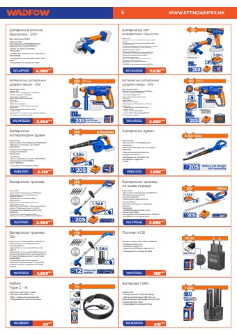 6%u0411%u0435%u0437 %u0447%u0435%u0442%u043a%u0438%u0447%u043a%u0438 Motor %u0411%u0440%u0437%u0438%u043d%u0430 %u0431%u0435%u0437 %u043e%u043f%u0442%u043e%u0432%u0430%u0440%u0443%u0432%u0430%u045a%u0435:3000/9000rpm %u0414%u0438%u0458%u0430%u043c%u0435%u0442%u0430%u0440 %u043d%u0430 %u0434%u0438%u0441%u043a:115mm %u041d%u0430%u0432%u043e%u0458 %u043d%u0430 %u0432%u0440%u0435%u0442%u0435%u043d%u043e%u0442%u043e:M14 %u0412%u043a%u043b%u0443%u0447%u0443%u0432%u0430: _x000D 0D_ %u041f%u043e%u043b%u043d%u0430%u0447 %u0437%u0430 1 %u041f%u0430%u0440%u0447%u0438%u045a%u0430 (WFCP518) %u041d%u0430%u043f%u043e%u0458%u0443%u0432%u0430%u045a%u0435 %u0432%u043e%u043b%u0442%u0438:220V-240V~50/ 60Hz %u0421%u043f%u0430%u043a%u0443%u0432%u0430%u043d%u043e %u043f%u043e %u043a%u0443%u0442%u0438%u0458%u0430 %u0432%u043e %u0431%u043e%u0458%u0430WLAPM21 4.980MKD%u0411%u0430%u0442%u0435%u0440%u0438%u0441%u043a%u0430 %u0430%u0433%u043e%u043b%u043d%u0430 %u0431%u0440%u0443%u0441%u0438%u043b%u043a%u0430 - 20V%u041d%u0430%u043f%u043e%u043d: 20V 1 %u041f%u0430%u0440%u0447%u0438%u045a%u0430 %u041b%u0438%u0442%u0438%u0443%u043c-%u0458%u043e%u043d%u0441%u043a%u0430 %u0431%u0435%u0437%u0436%u0438%u0447%u043d%u0430 %u0434%u0443%u043f%u0447%u0430%u043b%u043a%u0430(WCDP511) 1 %u041f%u0430%u0440%u0447%u0438%u045a%u0430 %u041b%u0438%u0442%u0438%u0443%u043c-%u0458%u043e%u043d%u0441%u043a%u0430 %u0410%u0433%u043e%u043b%u043d%u0430 %u043c%u0435%u043b%u043d%u0438%u0446%u0430 %u0431%u0435%u0437 %u0447%u0435%u0442%u043a%u0430(WLAPM21) %u041b%u0438%u0442%u0438%u0443%u043c-%u0458%u043e%u043d%u0441%u043a%u0430 %u0430%u0433%u043e%u043b%u043d%u0430 %u0431%u0440%u0443%u0441%u0430%u043b%u043a%u0430: %u0411%u0440%u0437%u0438%u043d%u0430 %u043d%u0430 %u043c%u043e%u0442%u043e%u0440 %u0441%u043e %u043b%u0438%u0442%u0438%u0443%u043c-%u0458%u043e%u043d%u0438 (WLAPM20_0_x0) %u0431%u0440. /9000rpm %u0414%u0438%u0458%u0430%u043c%u0435%u0442%u0430%u0440 %u043d%u0430 %u0434%u0438%u0441%u043a: 115mm %u041d%u0430%u0432%u043e%u0458 %u043d%u0430 %u0432%u0440%u0435%u0442%u0435%u043d%u043e%u0442%u043e: M14 %u041b%u0438%u0442%u0438%u0443%u043c-%u0458%u043e%u043d%u0441%u043a%u0430 %u0431%u0435%u0437%u0436%u0438%u0447%u043d%u0430 %u0434%u0443%u043f%u0447%u0430%u043b%u043a%u0430(WCDP511): %u0411%u0440%u0437%u0438%u043d%u0430 %u0431%u0435%u0437 %u043e%u043f%u0442%u043e%u0432%u0430%u0440%u0443%u0432%u0430%u045a%u0435: 0-400/0-1500rpm %u041c%u0430%u043a%u0441%u0438%u043c%u0430%u043b%u0435%u043d %u0432%u0440%u0442%u0435%u0436%u0435%u043d %u043c%u043e%u043c%u0435%u043d%u0442: 35Nm %u041f%u043b%u0430%u0441%u0442%u0438%u0447%u0435%u043d %u043a%u0430%u043f%u0430%u0446%u0438%u0442%u0435%u0442:m_x0x0 D_ %u041f%u043e%u0441%u0442%u0430%u0432%u043a%u0438 %u0437%u0430 %u0432%u0440%u0442%u0435%u0436%u0435%u043d %u043c%u043e%u043c%u0435%u043d%u0442: 15+1 %u041c%u0435%u0445%u0430%u043d%u0438%u0447%u043a%u0438 2-%u0431%u0440%u0437%u0438%u043d%u0441%u043a%u0438 gear %u0418%u043d%u0442%u0435%u0433%u0440%u0438%u0440%u0430%u043d LED %u0440%u0430%u0431%u043e%u0442%u043d%u0430 %u0441%u0432%u0435%u0442%u043b%u0438%u043d%u0430 %u0412%u043a%u043b%u0443%u0447%u0443%u0432%u0430: 2 %u043f%u0430%u0440%u0447%u0438%u045a%u0430 3.0Ah %u0431%u0430%u0442%u0435%u0440%u0438%u0441%u043a%u0438 %u043f%u0430%u043a%u0435%u0442 (WLBP530)WCK20512 7.630MKD%u0411%u0430%u0442%u0435%u0440%u0438%u0441%u043a%u0438 %u0441%u0435%u0442%u0428%u0442%u0440%u0430%u0444%u0438%u043b%u0438%u0446%u0430 + %u0411%u0440%u0443%u0441%u0438%u043b%u043a%u0430%u0411%u0435%u0437 %u0447%u0435%u0442%u043a%u0438%u0447%u043a%u0438 motor %u041d%u0430%u043f%u043e%u043d: 20V %u0411%u0440%u0437%u0438%u043d%u0430 %u0431%u0435%u0437 %u043e%u043f%u0442%u043e%u0432%u0430%u0440%u0443%u0432%u0430%u045a%u0435: 0-1100rpm %u0421%u0442%u0430%u043f%u043a%u0430 %u043d%u0430 %u0443%u0434%u0430%u0440: 0-5400bpm %u0415%u043d%u0435%u0440%u0433%u0438%u0458%u0430 %u043d%u0430 %u0443%u0434%u0430%u0440: 2.0J %u041c%u0430%u043a%u0441.%u043a%u0430%u043f%u0430%u0446%u0438%u0442%u0435%u0442 %u043d%u0430 %u0434%u0443%u043f%u0447%u0435%u045a%u0435: _2m. mm %u0414%u0440%u0432%u043e: 28mm SDS Plus %u0447%u0430%u043a system %u0418%u043d%u0442%u0435%u0433%u0440%u0438%u0440%u0430%u043d%u0430 LED %u0440%u0430%u0431%u043e%u0442%u043d%u0430 %u0441%u0432%u0435%u0442%u043b%u0438%u043d%u0430 %u0412%u043a%u043b%u0443%u0447%u0443%u0432%u0430: 3 %u043f%u0430%u0440%u0447%u0438%u045a%u0430 %u0434%u0443%u043f%u0447%u0430%u043b%u043a%u0430 (6,8,10 mm) 1 %u043f%u0430%u0440%u0447%u0435 chisel %u0411%u0430%u0442%u0435%u0440%u0438%u0458%u0430%u0442%u0430 %u0438 %u043f%u043e%u043b%u043d%u0430%u0447%u043e%u0442 %u0441%u0435 %u043f%u0440%u043e%u0434%u0430%u0432%u0430%u0430%u0442 %u043e%u0434%u0434%u0435%u043b%u043d%u043e %u0421%u043f%u0430%u043a%u0443%u0432%u0430%u043d%u0438 %u043f%u043e %u043a%u0443%u0442%u0438%u0458%u0430 %u0432%u043e %u0431%u043e%u0458%u0430WLM15220 3.990MKD%u0411%u0430%u0442%u0435%u0440%u0438%u0441%u043a%u0438 %u0440%u043e%u0442%u0438%u0440%u0430%u0447%u043a%u0438 %u0443%u0434%u0430%u0440%u0435%u043d %u0447%u0435%u043a%u0430%u043d - 20V%u0411%u0435%u0437 %u0447%u0435%u0442%u043a%u0438%u0447%u043a%u0438 motor%u0411%u0440%u0437%u0438%u043d%u0430 %u0431%u0435%u0437 %u043e%u043f%u0442%u043e%u0432%u0430%u0440%u0443%u0432%u0430%u045a%u0435: 0-1100rpm %u0421%u0442%u0430%u043f%u043a%u0430 %u043d%u0430 %u0443%u0434%u0430%u0440: 0-5400bpm %u0415%u043d%u0435%u0440%u0433%u0438%u0458%u0430 %u043d%u0430 %u0443%u0434%u0430%u0440: 2.0J %u041c%u0430%u043a%u0441.%u043a%u0430%u043f%u0430%u0446%u0438%u0442%u0435%u0442 %u043d%u0430 %u0434%u0443%u043f%u0447%u0435%u045a%u0435: _2m. mm %u0414%u0440%u0432%u043e: 28mm SDS Plus %u0447%u0430%u043a system %u0418%u043d%u0442%u0435%u0433%u0440%u0438%u0440%u0430%u043d%u0430 LED %u0440%u0430%u0431%u043e%u0442%u043d%u0430 %u0441%u0432%u0435%u0442%u043b%u0438%u043d%u0430 %u0412%u043a%u043b%u0443%u0447%u0443%u0432%u0430: 3 %u043f%u0430%u0440%u0447%u0438%u045a%u0430 %u0434%u0443%u043f%u0447%u0430%u043b%u043a%u0438 (6,8,10 mm) 1 %u043f%u0430%u0440%u